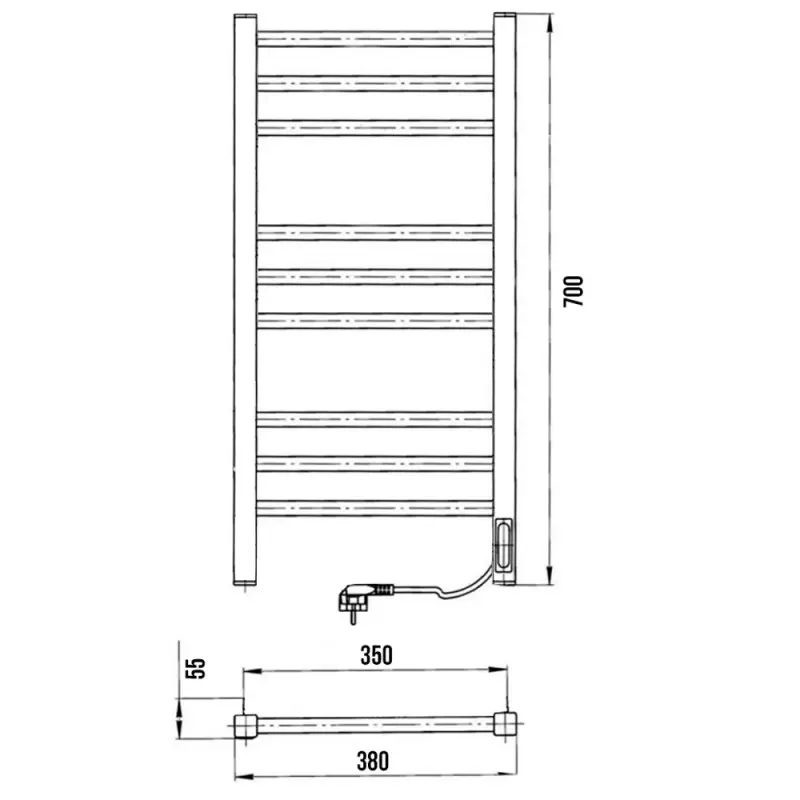 Полотенцесушитель электрический Laris Астор с высотой 70 см., используется для обогрева и сушки помещения. Нижнее подключение. Изготовлен из черной стали.