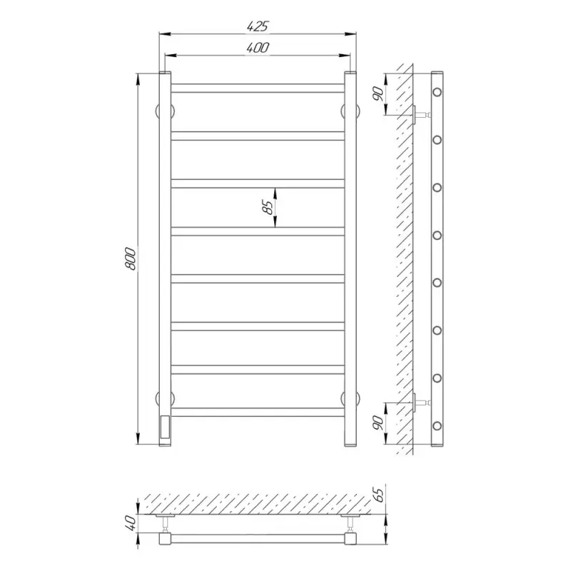 Полотенцесушитель электрический Laris Феличия с высотой 80 см., используется для обогрева и сушки помещения. Нижнее подключение. Изготовлен из черной стали.