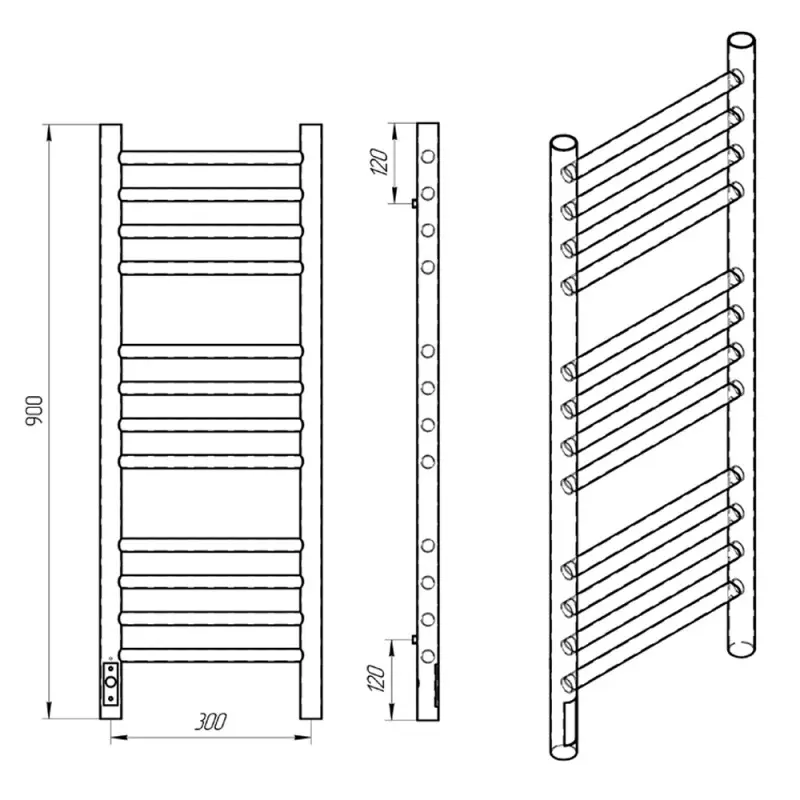 Полотенцесушитель электрический Laris Лаванда с высотой 90 см., используется для обогрева и сушки помещения. Нижнее подключение. Изготовлен из черной стали.