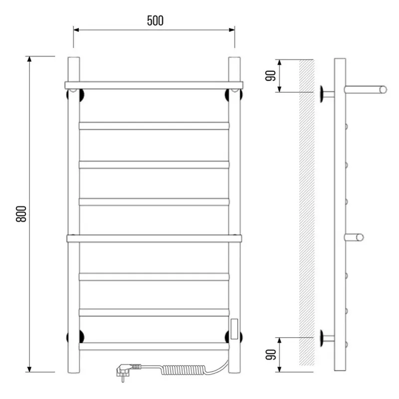 Полотенцесушитель электрический Laris Лавина П9 80х50 правый Хром глянцевый 73207651