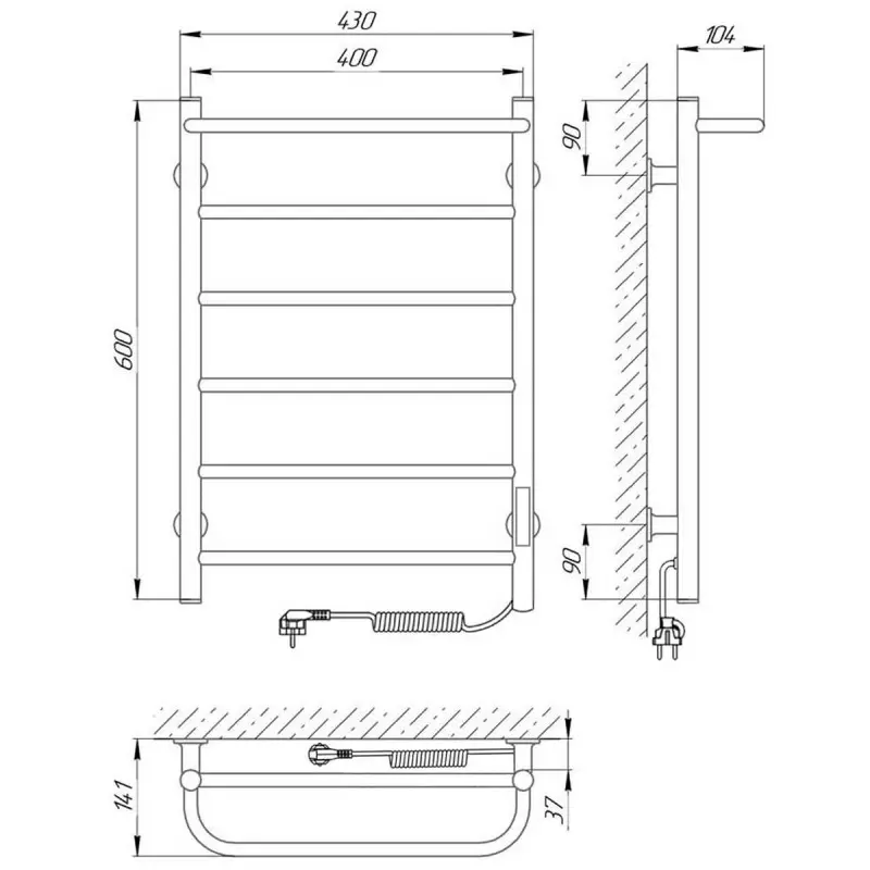 Полотенцесушитель электрический Laris Прайм с высотой 60 см., используется для обогрева и сушки помещения. Нижнее подключение. Изготовлен из черной стали.