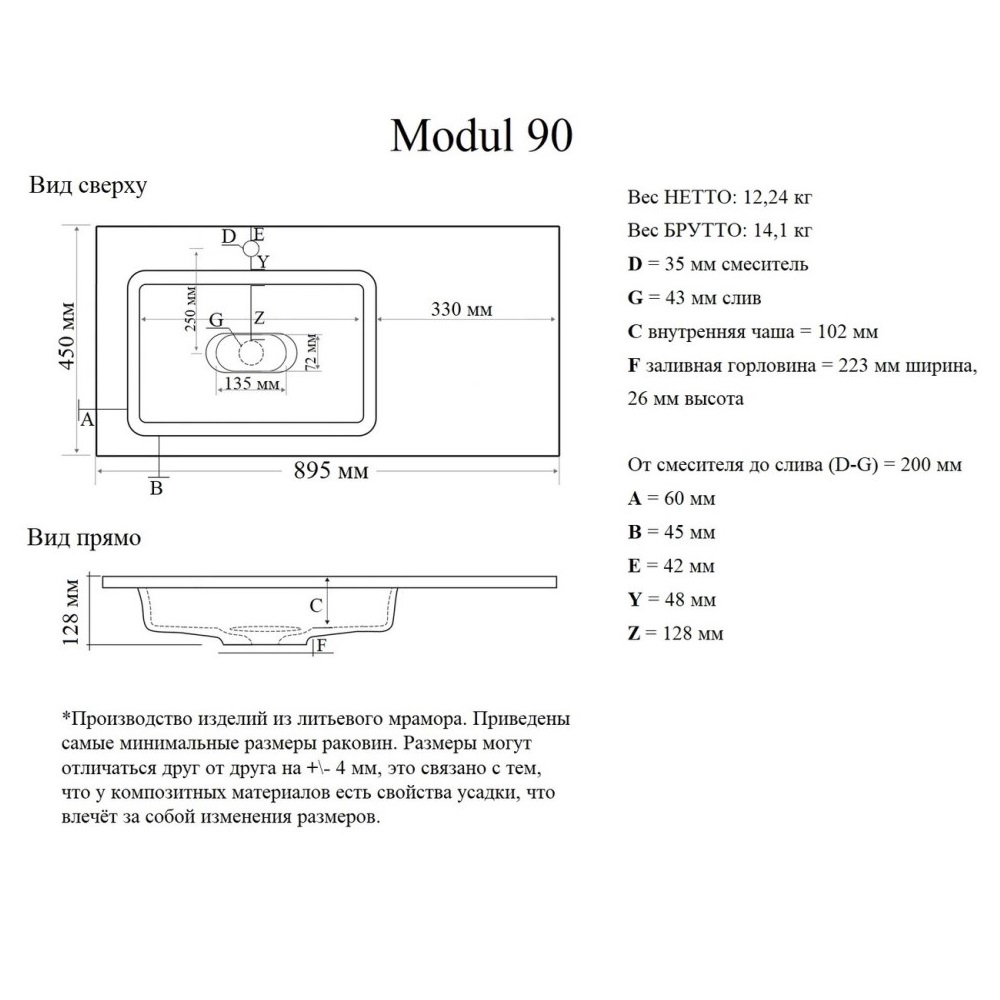 Раковина на мебель Grossman Модуль имеет размер 89,5х45 см, обладает прямоугольной формой. На 1 отверстие для смесителя. Модель гармонично впишется в интерьер любой ванной комнаты.