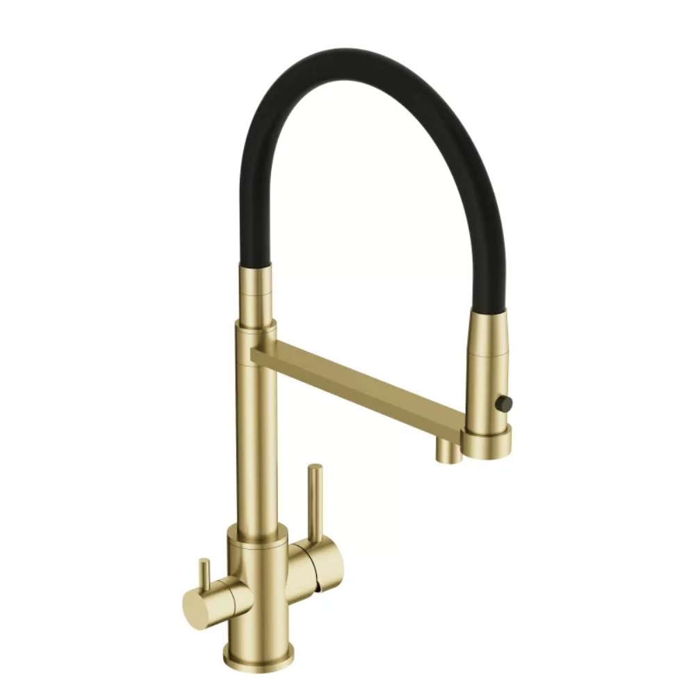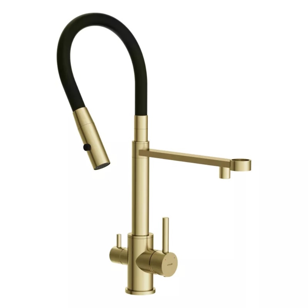 Смеситель для кухни Cersanit Zen с подключением фильтра с гибким изливом Золото матовое 68251