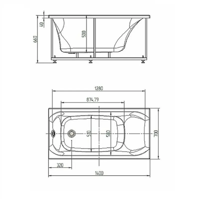 Ванна акриловая Aquatek Альфа 140х70 (каркас + слив-перелив + экран) слив слева Белый ALF140-0000019